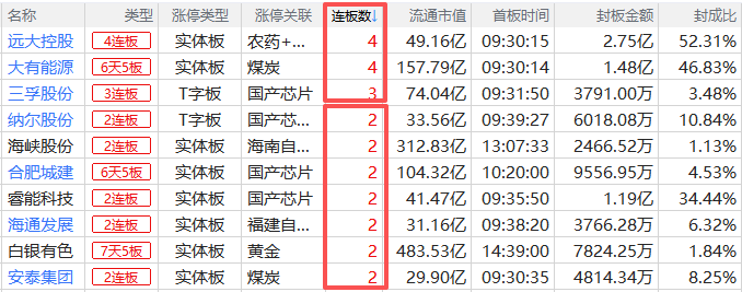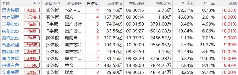 焦点股方面,远大控股、大有能源晋级4连板;存储芯片概念仍局部活跃,合肥城建10天6板、三孚股份3连板;贵金属叠加可控核聚变概念的白银有色7天5板;黄磷概念股澄星股份同样走出7天5板。