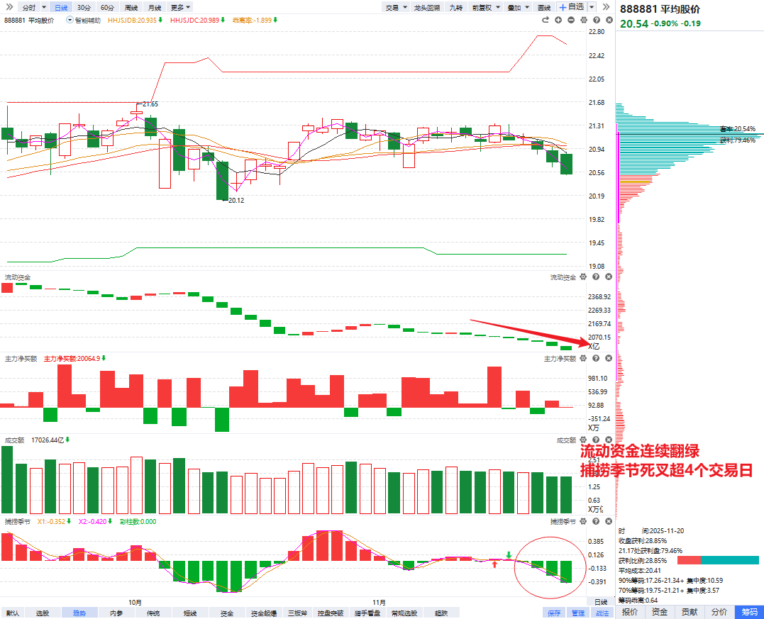 指数角度,平均股价流动资金连续翻绿,死叉调整已经4个交易日,今天利好高开还是低走,进一步验证了A股高开必被砸的“祖训”。相对好的是,今天终于是光脚阴线了,没有资金抢反弹,风险释放才充分, 而且上证也开始补跌,这对于探底筑底的节奏来说是比较好的,前面哪怕市场上4000多只个股翻绿,大盘依旧稳如泰山,恐慌盘一直杀不出来,所以每次反弹一拉升马上就有抛压出来。指数死叉调整后期,只要出现一个加速下探,大盘回踩之前提到的3900点附近强支撑,那仍然可以看一个小趋势的反弹。