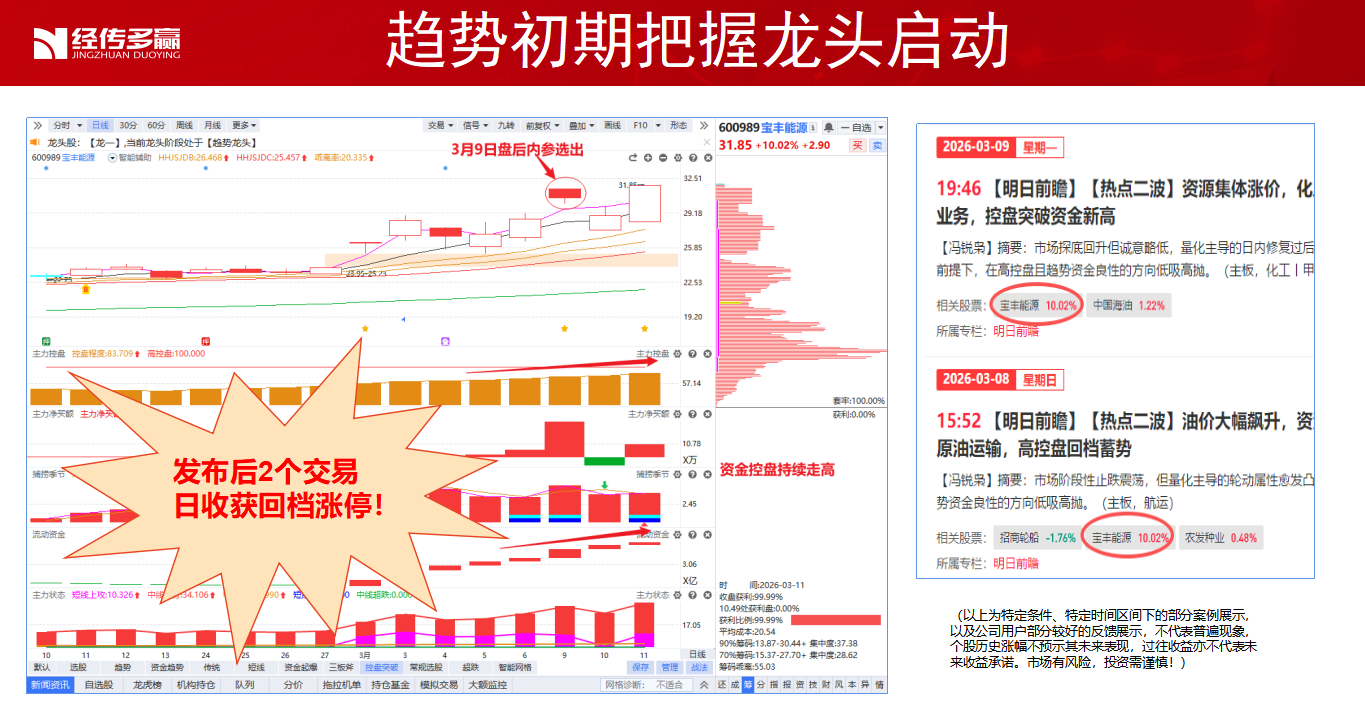 - 3月9日晚内参选出化工概念宝丰能源,发布次日低开高走,在2个交易日内斩获涨停,让敢于回档低吸的朋友收获满满!