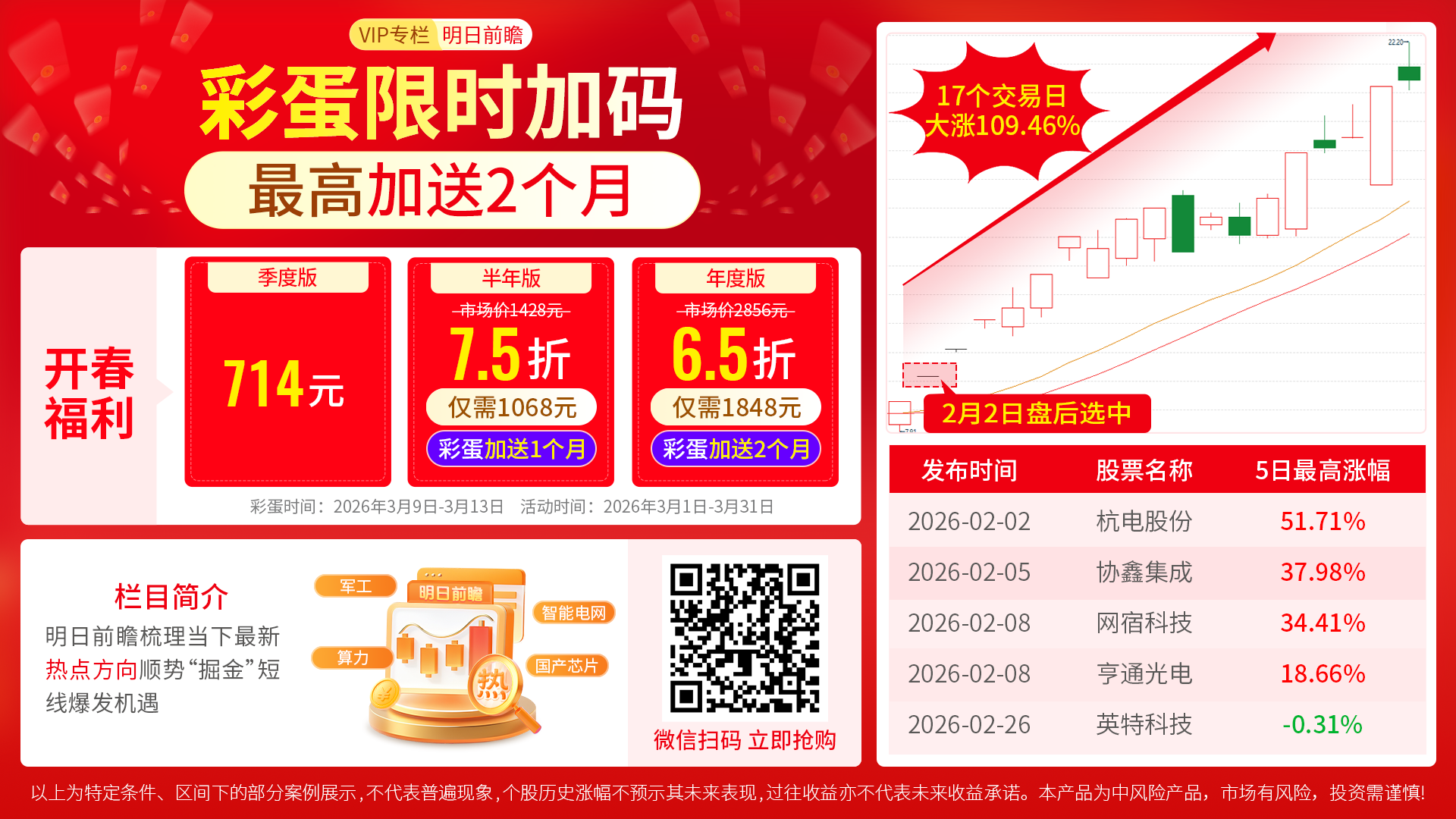 随着平均股价站上辅助线,情绪逐渐修复回暖,新一轮机会窗口已经打开。与其在“电风扇行情”里盲目跟风、反复踏空,不如紧跟《明日前瞻》专业节奏,牢牢掌握投资主动权,让每一次操作更有方向,每一笔投入更有回报!