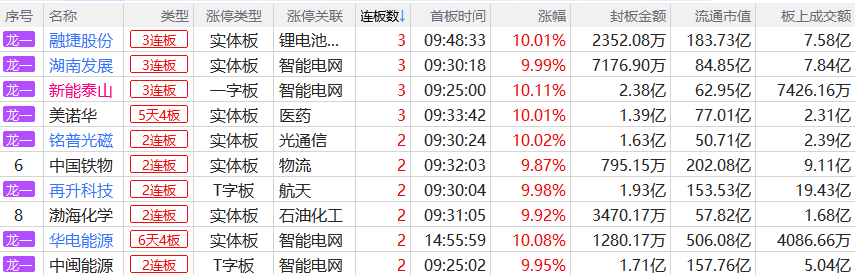 焦点股方面,电力股华电能源13天8板,并购重组的大胜达7天5板,减肥药概念股美诺华10天5板。