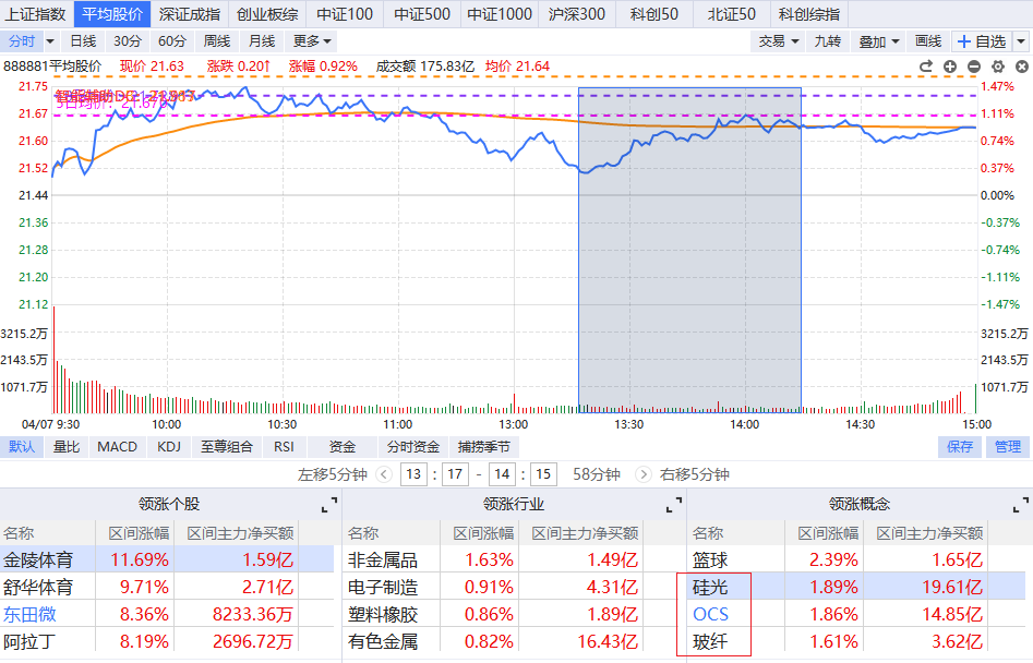指数方面,平均股价反弹到辅助线附近承压,量能依旧低迷,捕捞季节处在绿柱弱势区间,短线震荡风险加大,需要注意适当收缩仓位。目前平均股价距离辅助线比较近,但缺少足够的量能向上突破压力,哪怕短线在量化折腾下回流个一天半天,对箱体结构也没太大的影响,整体还是以控仓等待回踩低点试错为核心策略,或者等市场给一根放量中阳线确立新趋势。