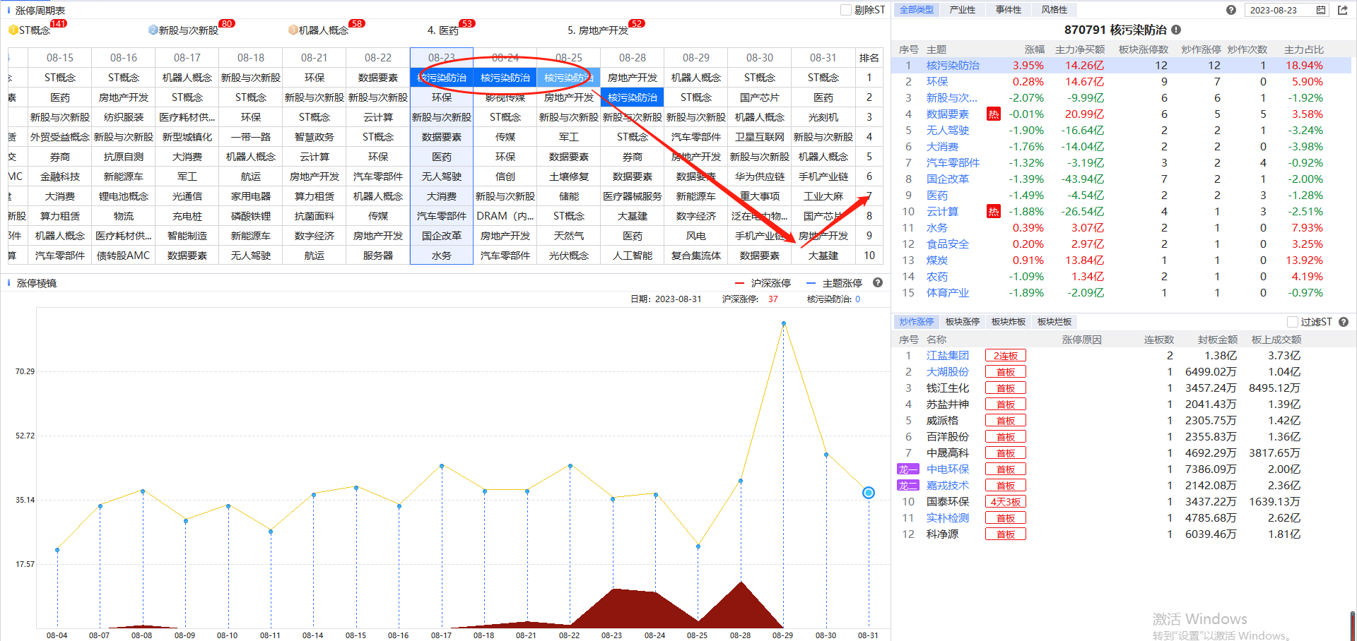 ②一个板块能够持续领涨,涨停潮后还有涨停潮,说明资金介入非常深,一般首次回档还有反弹预期。今天由于是财报披露最后一天的敏感时间窗口,业绩预期较差的板块不敢大举回流,后市如果指数分歧市场缩量,仍可关注核污染、房地产这些一度连续领涨2天或以上的投机题材,是否出现回流机会。