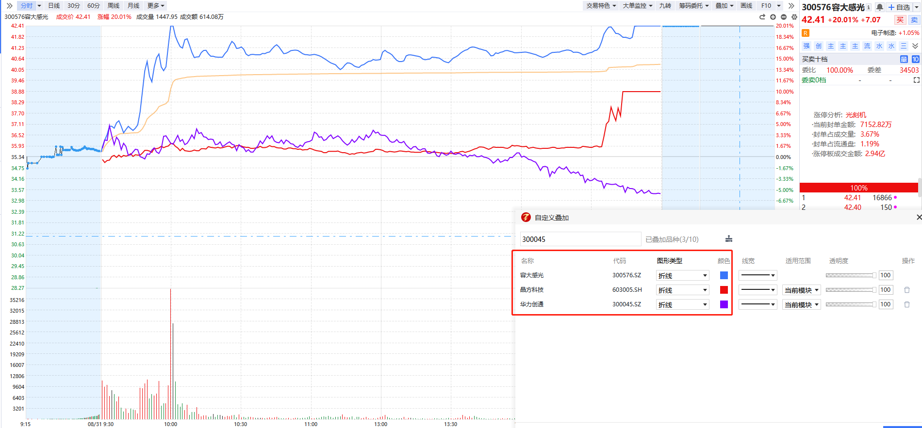开盘芯片类率先异动,中芯国际率先反包昨日阴线,澳柯玛也因为大股东参股青岛芯恩直接一字板,叠加华为的先进封装中富电路率先20cm首板;光刻胶这边也因为事件成为芯片其中一个联动方向,容大感光冲击涨停,波长光电大涨,格林达、常青科技首板;康鹏科技因为叠加光刻胶水下大幅拉升,庚星股份3板。