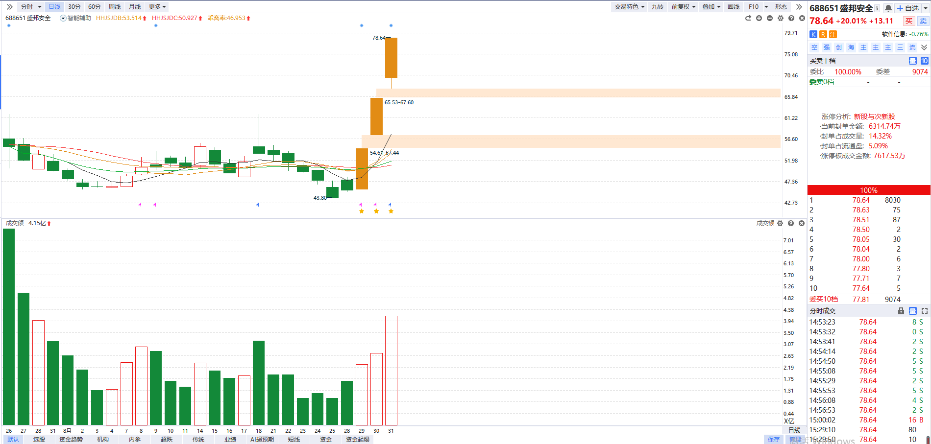 市场最近频传科创板降低门槛的小作文,加上前段时间科创板的回购潮利好,科创活跃度整体提升。而8月以来北向持续外流,自从盟固利创下上市首日冲高37倍的神话后,次新的热度就一直不减。于是两个方向一拍即合,科创+次新包揽近期市场最亮眼的赚钱效应,龙头盛邦安全20cm三连板。