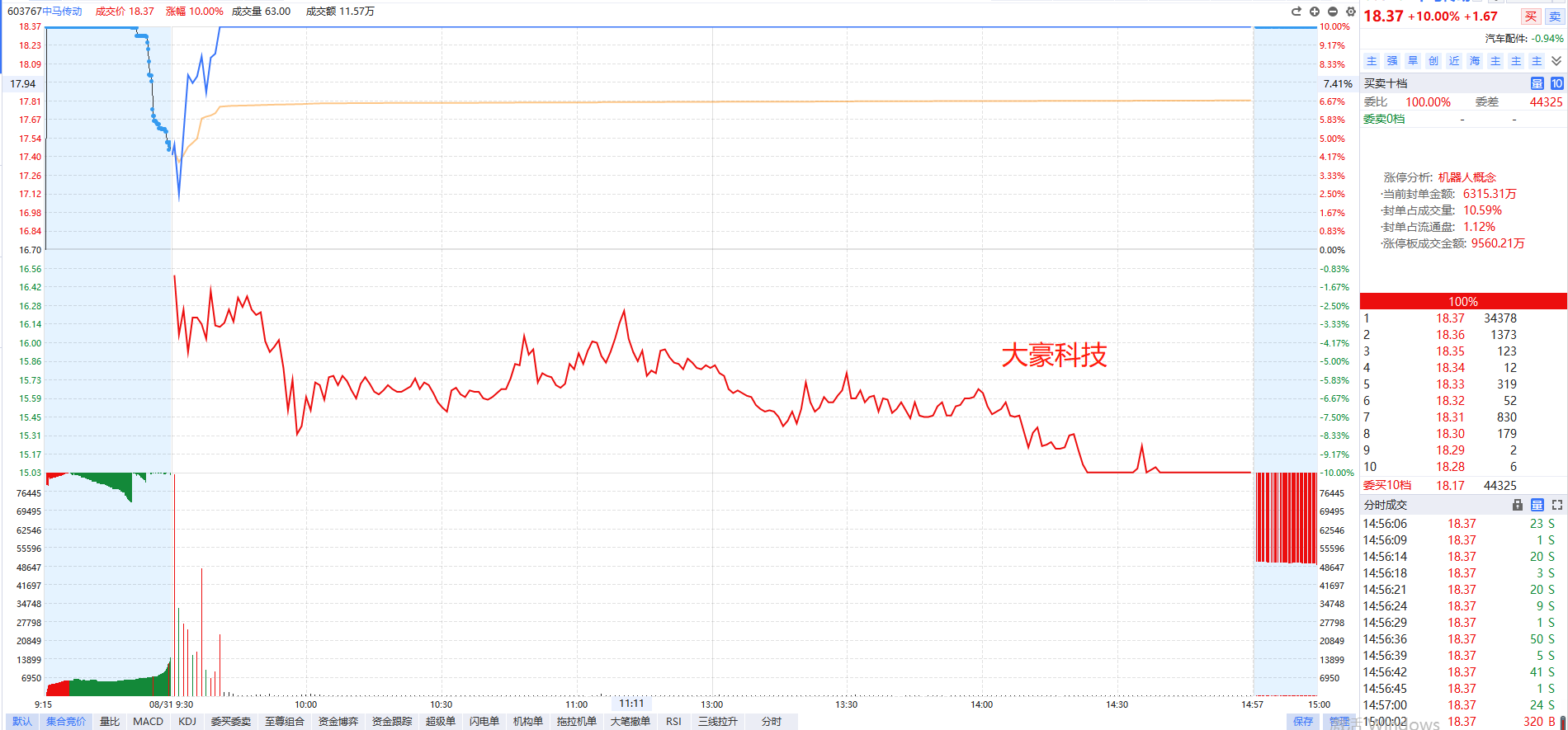 ①机器人龙头晋级3板,数据要素今天调整缩量,作为跟市场强共振的题材,如果市场放量,还有趋势走强的预期,后市回踩辅助线的低吸机会值得持续关注。