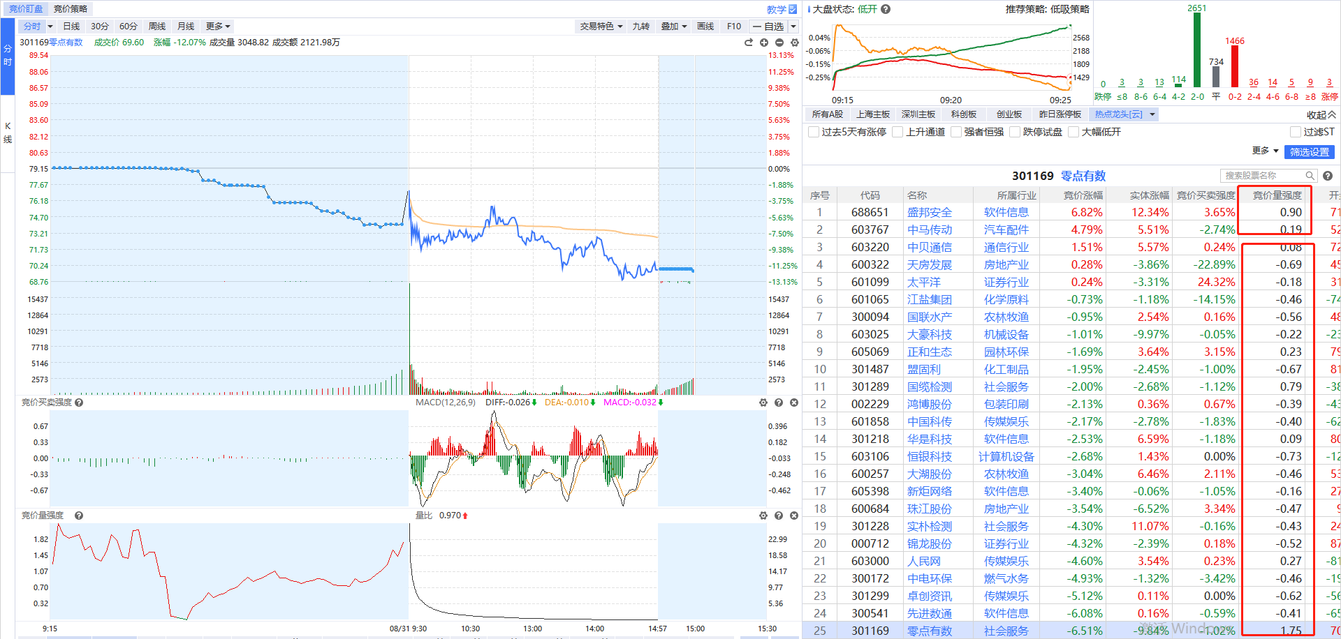 ②虽然数据要素前排零点有数低开后有资金低吸进场,竞价量强度比较高,但昨天也说过了,该股单日最大浮盈已经超过30%,在震荡市里,这么大的单日浮盈很难有资金能够忍住不兑现,所以哪怕早盘有资金承接,接不接得住也很难说,不适合贸然进场。