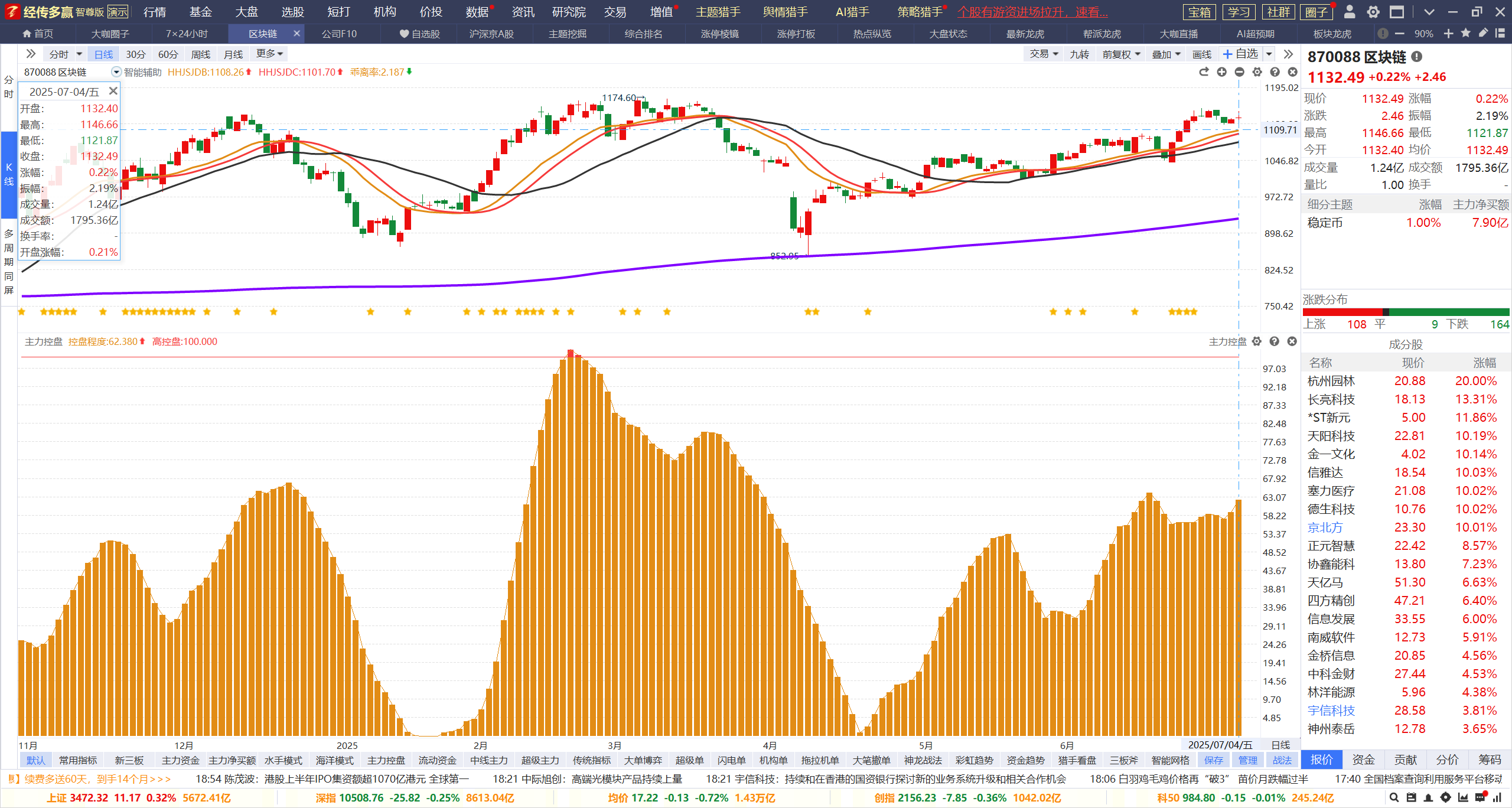 看看区块链能不能率先出现上升回档 金叉信号 ,周五章盟主进了 京北方,看看能不能带出新高度。