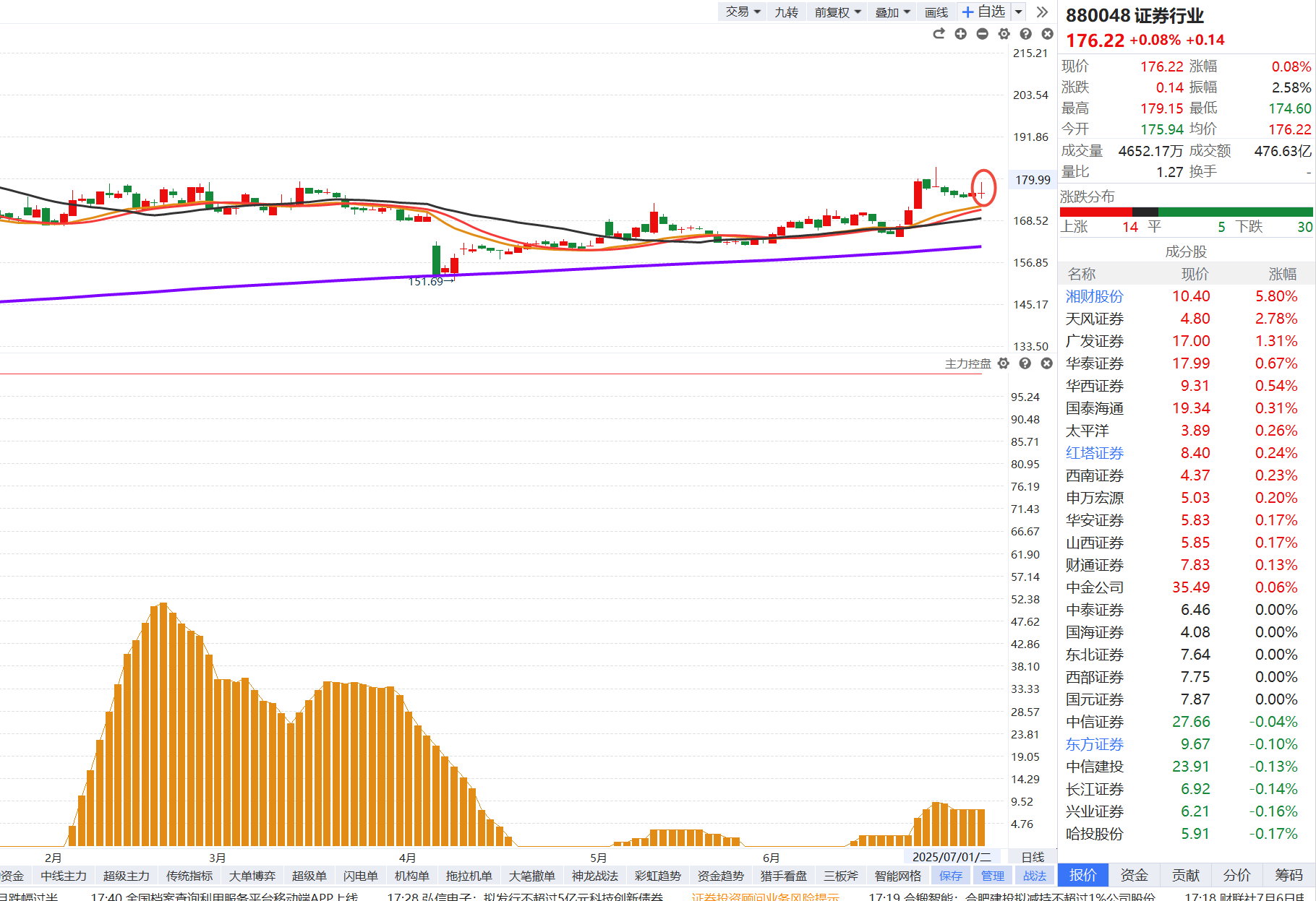其次周五券商出现异动, 十字星信号 ,券商可以看成国家队意愿,如果下周要突破3500 那么券商需要发力, 而券商月线也出现金叉了,就看表现的情况如何。